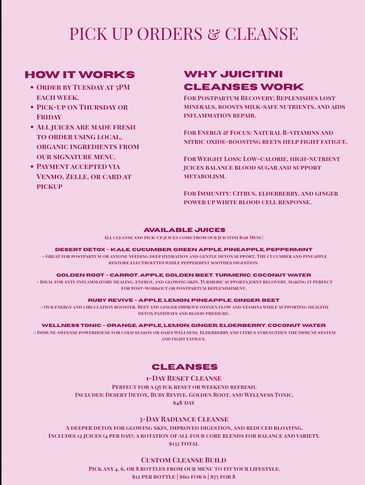 AND PRE ORDER JUICES FOR PICK UP OR CLEANSES. DM ON JUICITINI BAR INSTAGRAM OR TEXT 5038875006